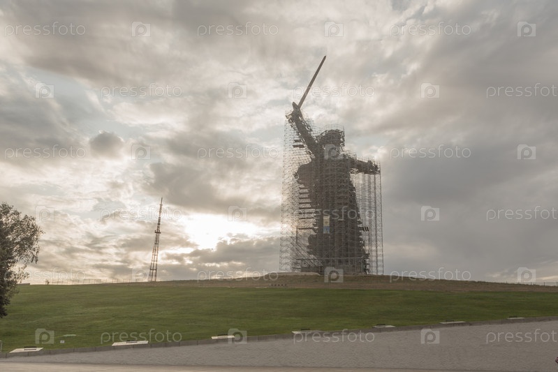 Волгоград, Россия, август 2019 г. Монумент Родина-мать Волгоград Мамаев курган. Памятник на реконструкции