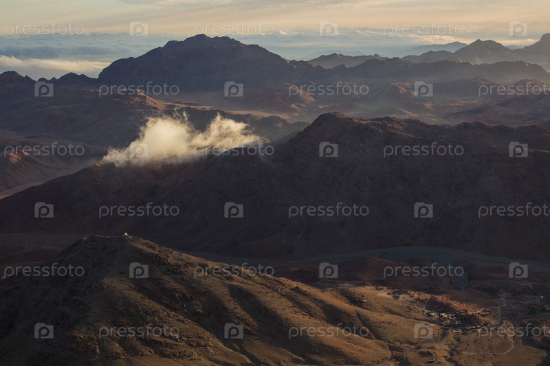 Удивительный восход солнца на горе Синай, гора Моисея с бедуинами, прекрасный вид с горы
