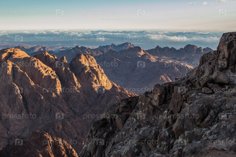Удивительный восход солнца на горе Синай, гора Моисея с бедуинами, прекрасный вид с горы