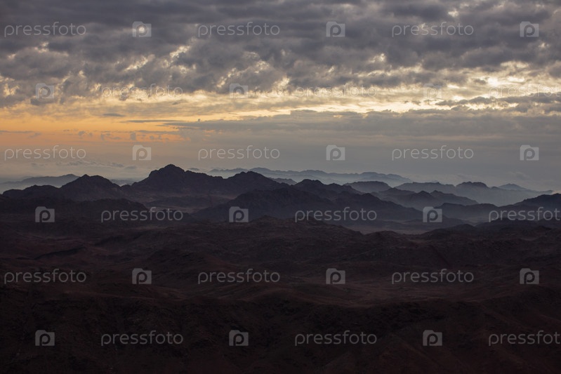 Удивительный восход солнца на горе Синай, гора Моисея с бедуинами, прекрасный вид с горы