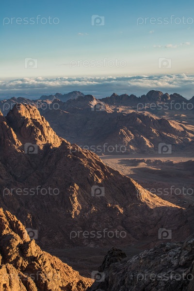 Удивительный восход солнца на горе Синай, гора Моисея с бедуинами, прекрасный вид с горы
