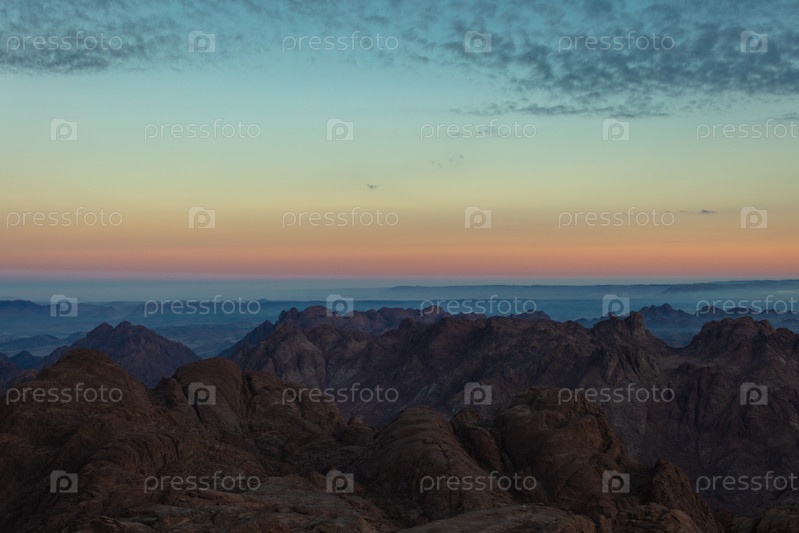Удивительный восход солнца на горе Синай, гора Моисея с бедуинами, прекрасный вид с горы