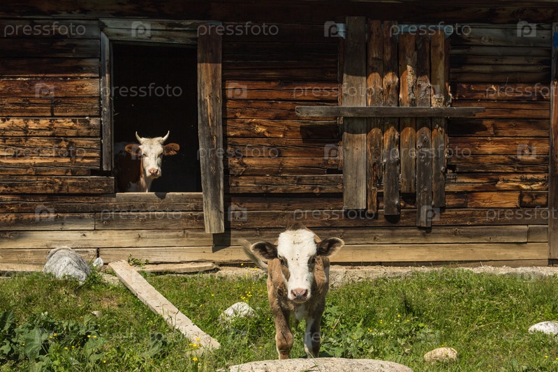 Коровы спасаются от жары в старом заброшенном деревянном доме