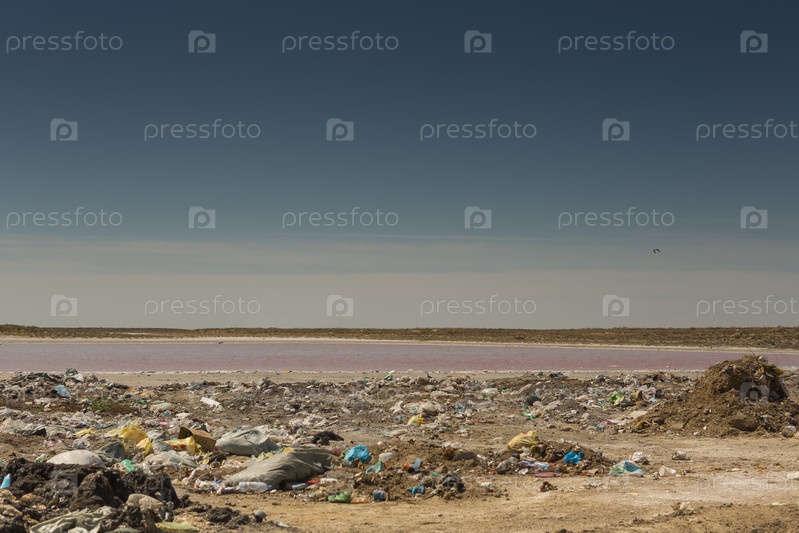 Незаконная свалка мусора возле водоема технического назначения с розовой водой