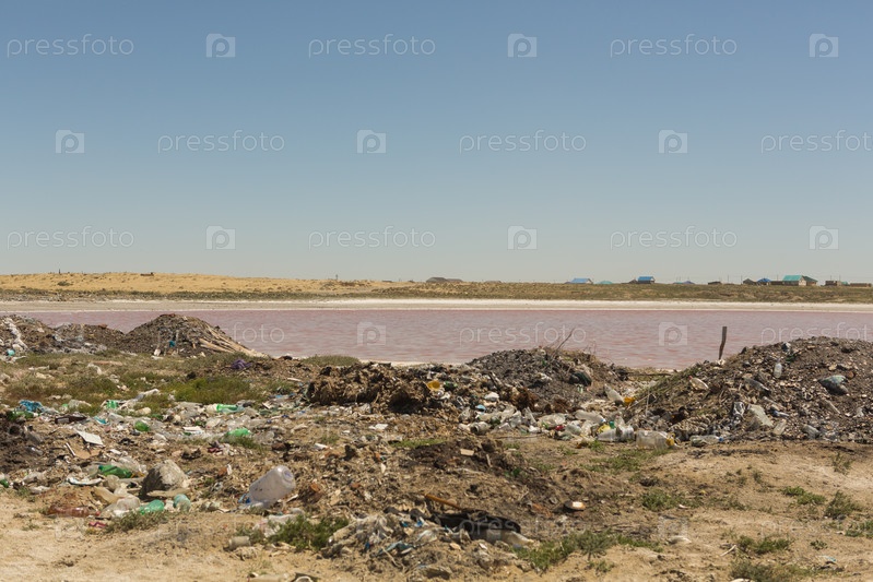 Незаконная свалка мусора возле водоема технического назначения с розовой водой