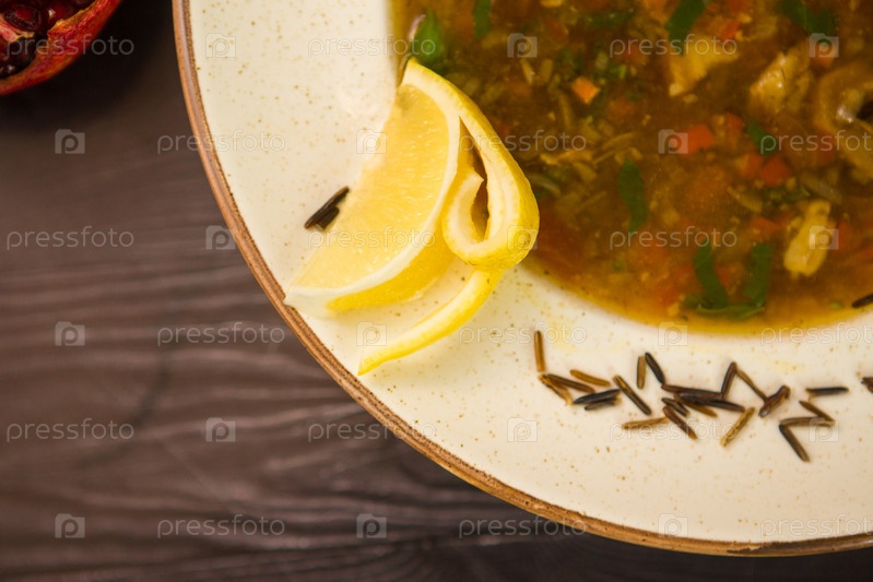 Домашний куриный овощной суп, вид сверху