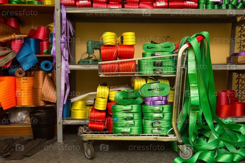 Промышленная швейная машина шьет ленточную стропу. Производство текстильных строп и ремней-завязок