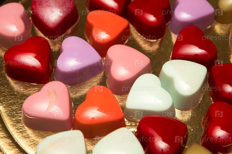Вкусные шоколадные конфеты, крупный план, разные цвета