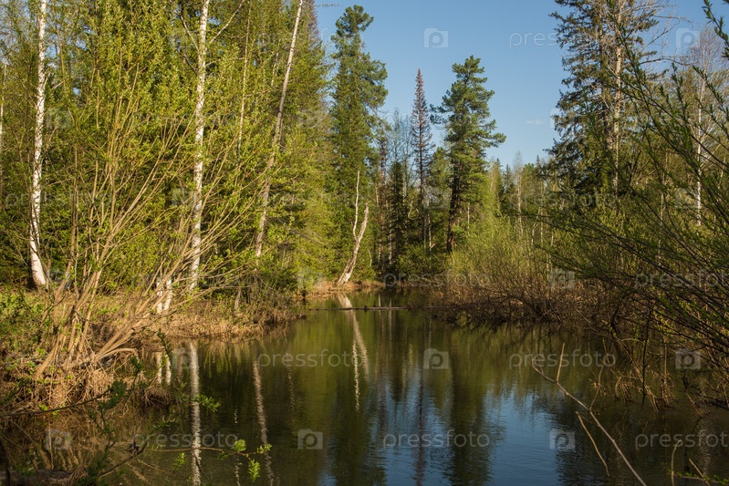 Болото с грязью в березовом лесу