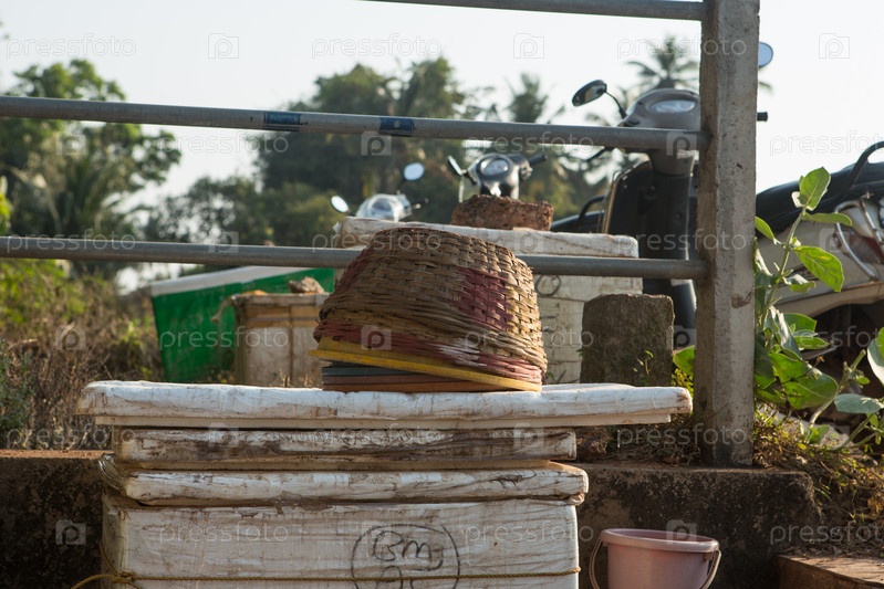 Крупный план коричневой круглой рыболовной корзины