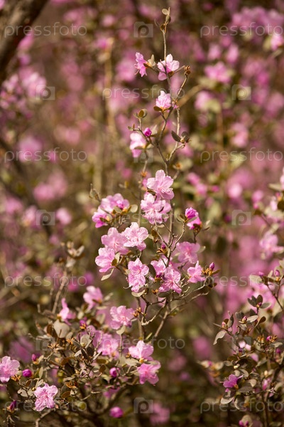 Рододендрон Ледебура розовый цветет в мае в горах Алтая