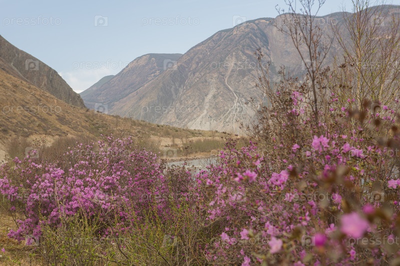 Рододендрон Ledebura розовый цветёт в мае в горах Алтая