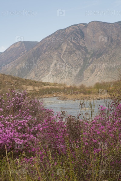 Рододендрон Ledebura розовый цветёт в мае в горах Алтая