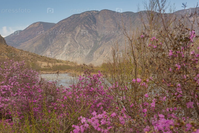 Рододендрон Ледебура розовый цветет в мае в горах Алтая