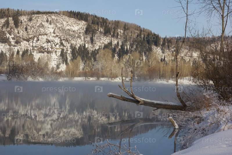 Технологический канал ГЭС в зимний период