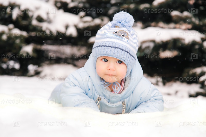 Ребенок играет в снегу на улице