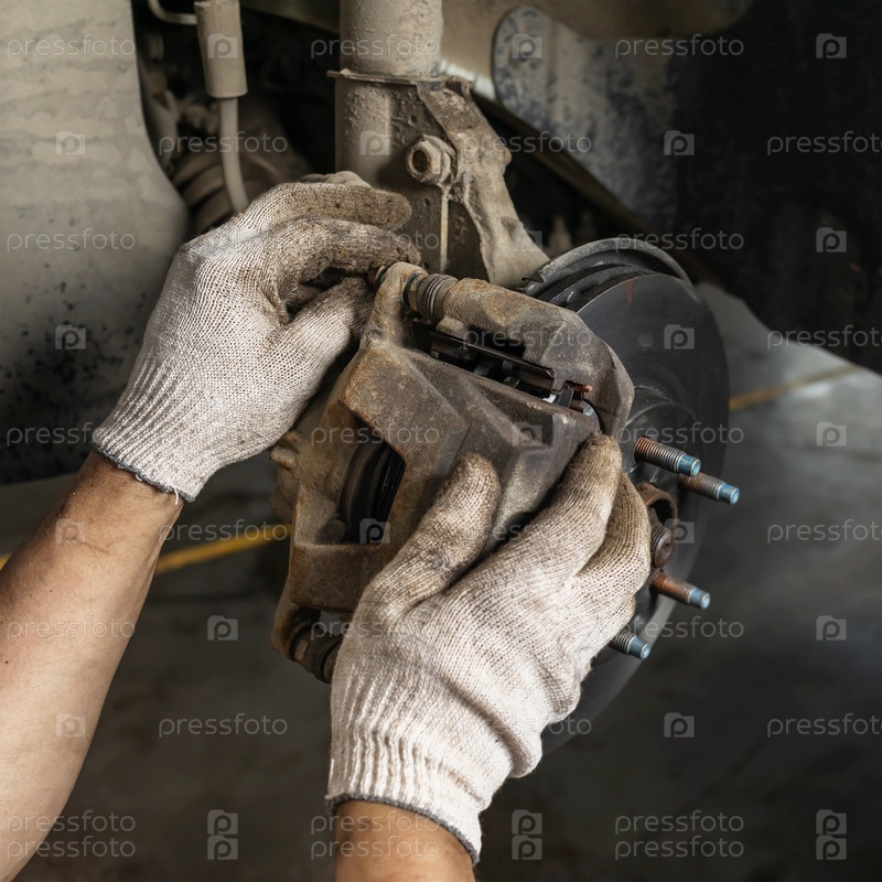 Процесс обслуживания старых тормозных суппортов легкового автомобиля, крупный план