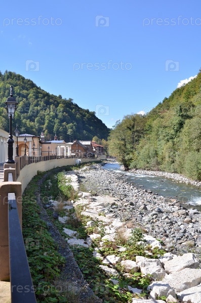 Вид на набережную реки Мцеста, Красная Поляна, Сочи, Россия