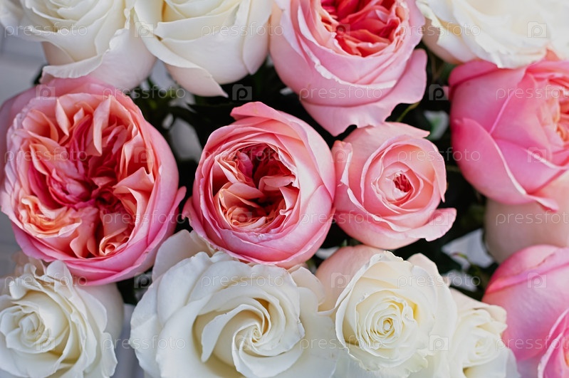 Натуральный свежий розовый и белый цветок розы, вид сверху. Крупным планом