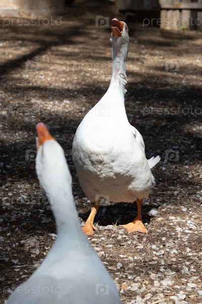Несколько гусей на ферме