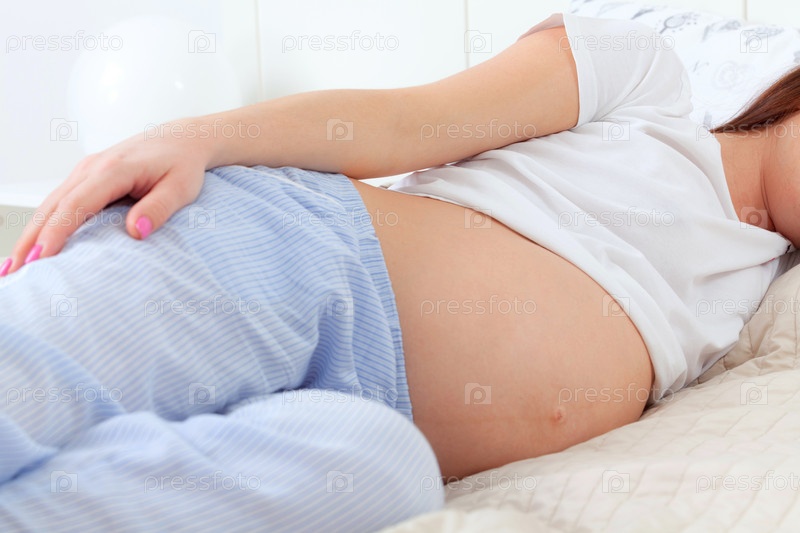 Крупным планом — беременная женщина в постели