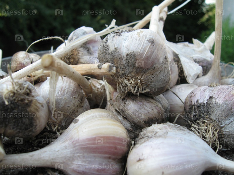 Свежий чеснок только что выкопанный из земли
