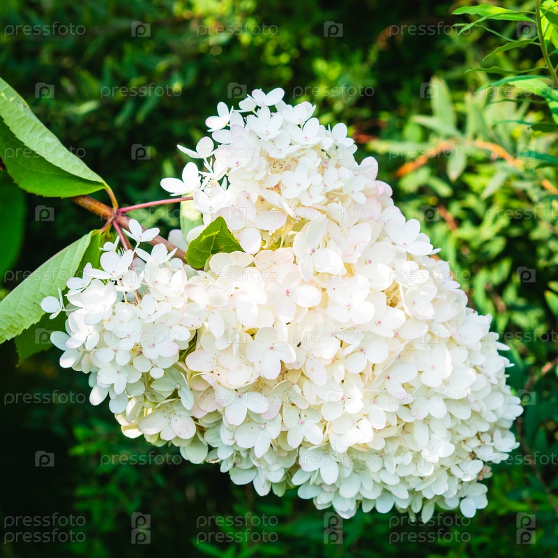 Прекрасная цветущая белая гортензия, цветочный фон