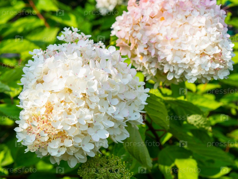Прекрасная цветущая белая гортензия, цветочный фон