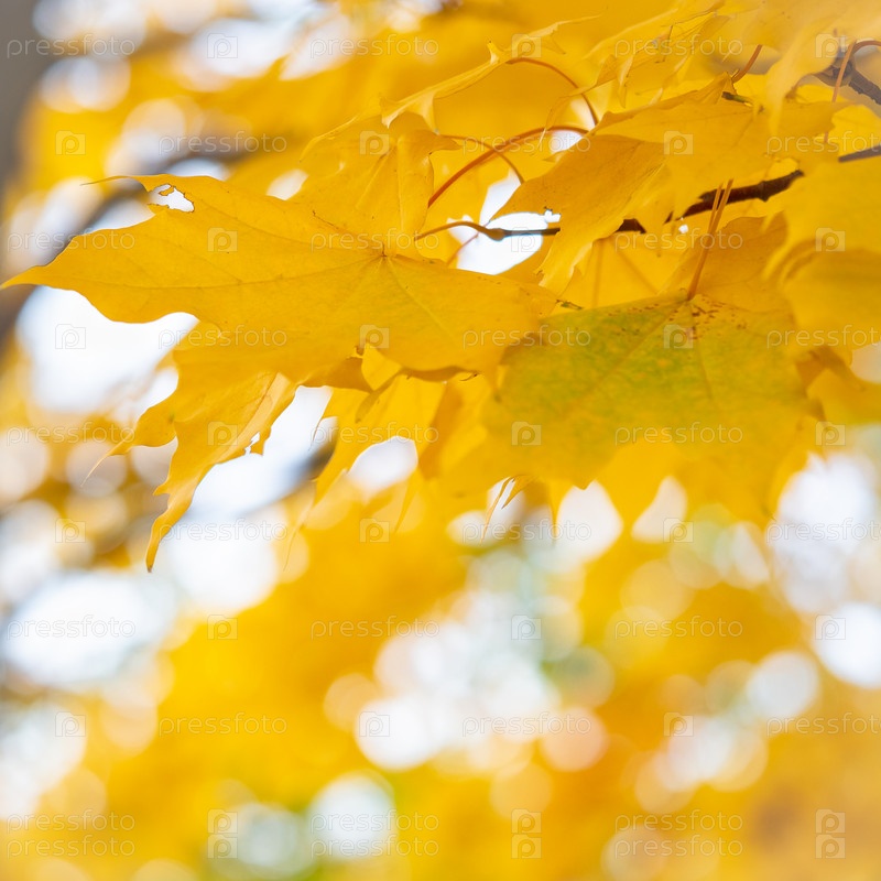 Осенний абстрактный фон из ярко-желтых и зеленых листьев