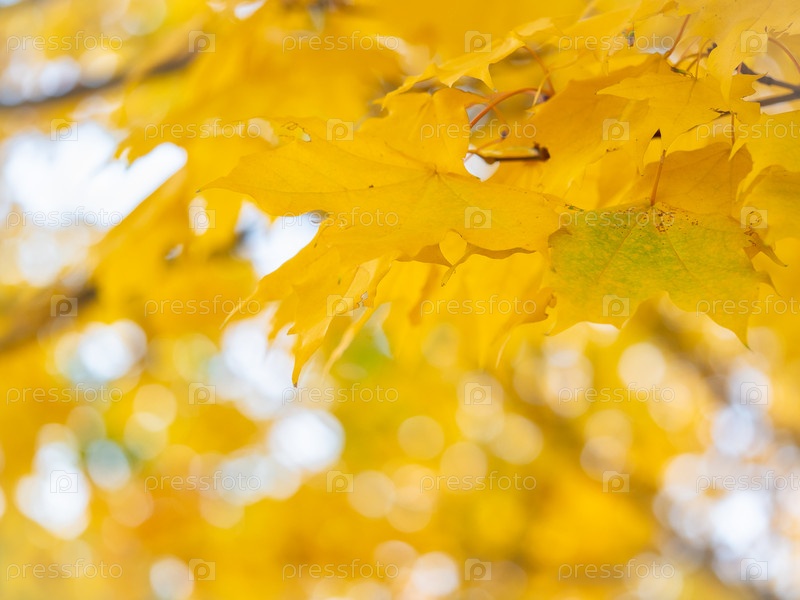Осенний абстрактный фон из ярко-желтых и зеленых листьев
