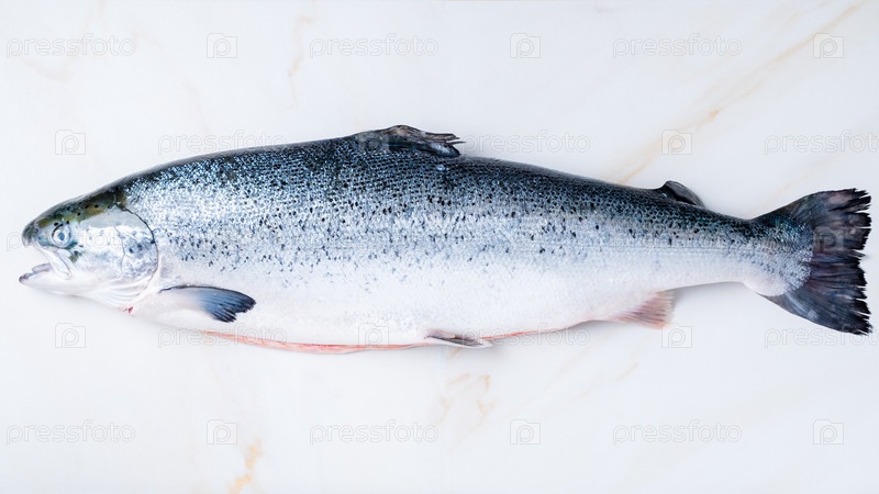Целая свежая сырая большая рыба лосось