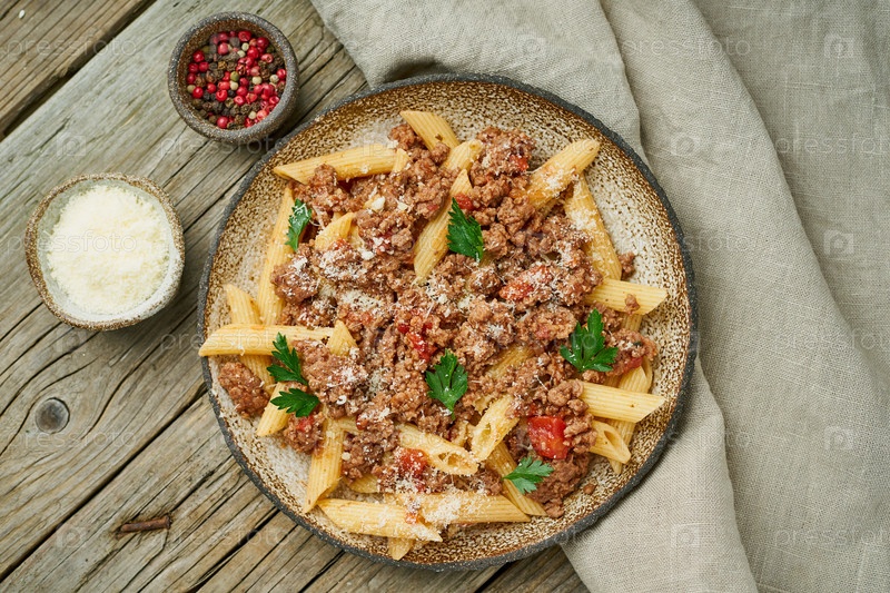 Паста Болоньезе. Фузилли с томатным соусом, рубленая говядина