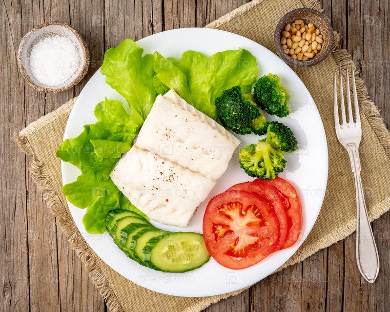 Палео, кето, fodmap здоровое питание с овощами на белой тарелке на белом столе, вид со стороны
