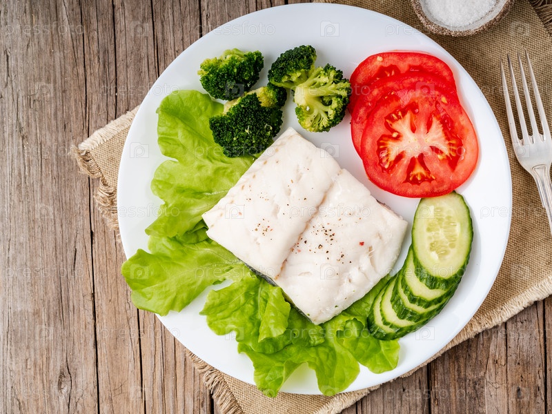 Палео, кето, fodmap здоровое питание с овощами на белой тарелке на деревянном столе, вид сверху