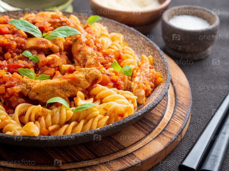 Паста Болоньезе. Фузилли с томатным соусом, рубленая говядина