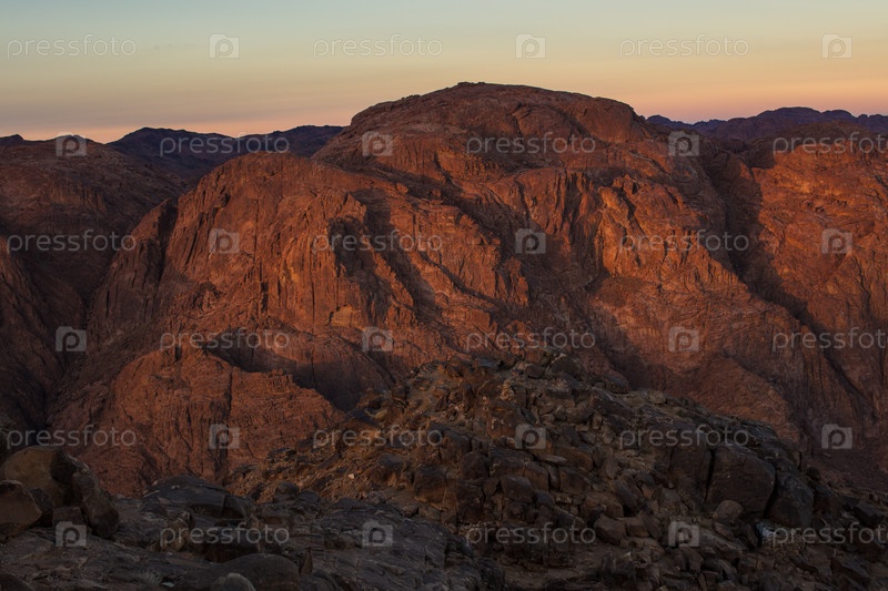 Удивительный восход солнца на горе Синай, гора Моисея с бедуинами, прекрасный вид с горы