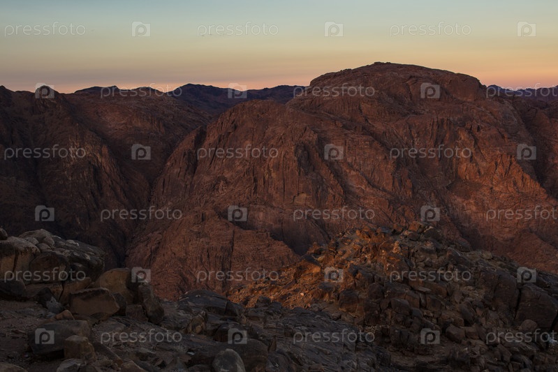 Удивительный восход солнца на горе Синай, гора Моисея с бедуинами, прекрасный вид с горы