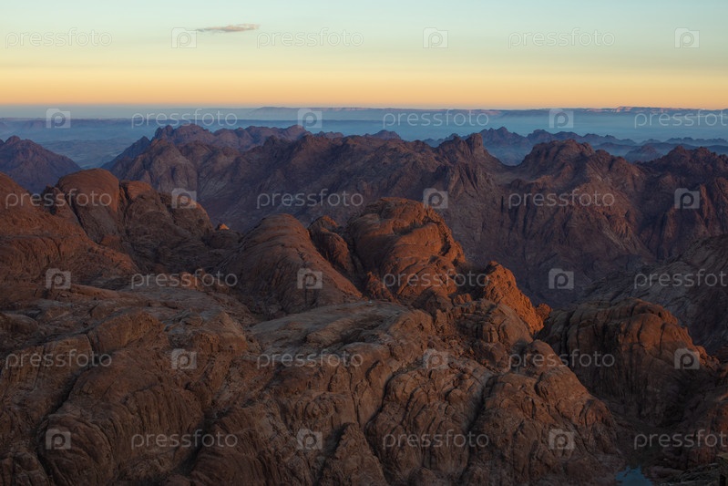 Удивительный восход солнца на горе Синай, гора Моисея с бедуинами, прекрасный вид с горы