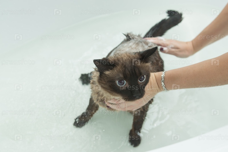 Кошачья ванна. Мокрая кошка.Кошка не любит мыться в ванной