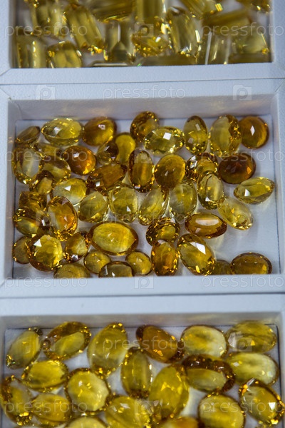 Искусственные ювелирные камни в витрине ювелирного магазина