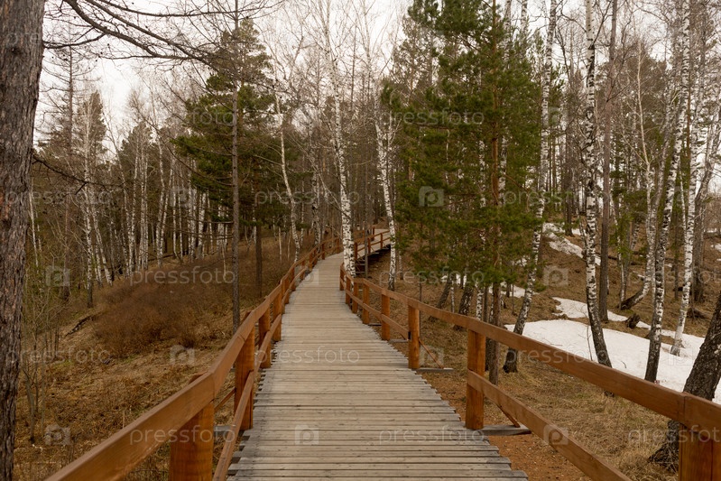 Дорога через хвойный лес весной, Сибирь