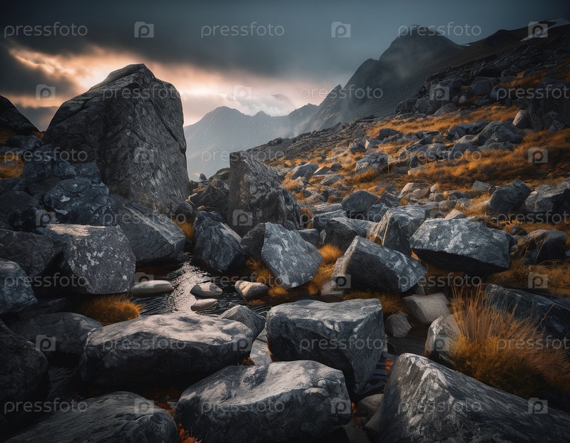 Красивый кинематографический горный пейзаж с черным мрамором и гранитом