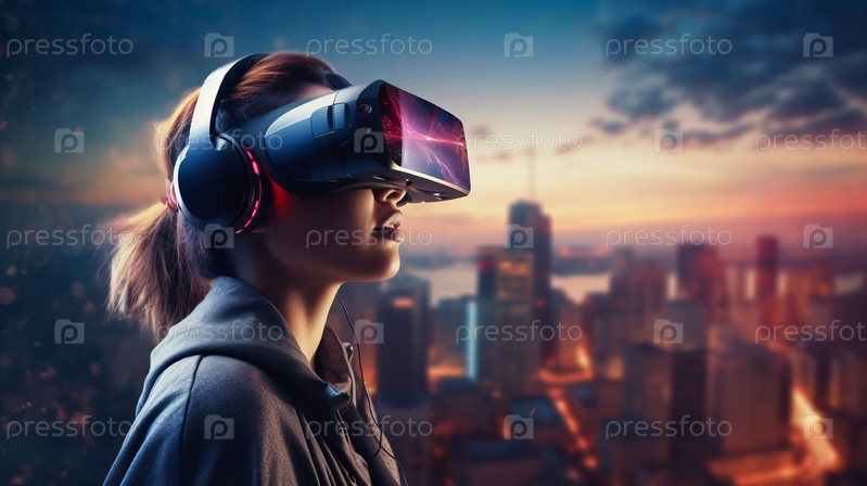 Женщина с очками виртуальной реальности. Концепция будущих технологий