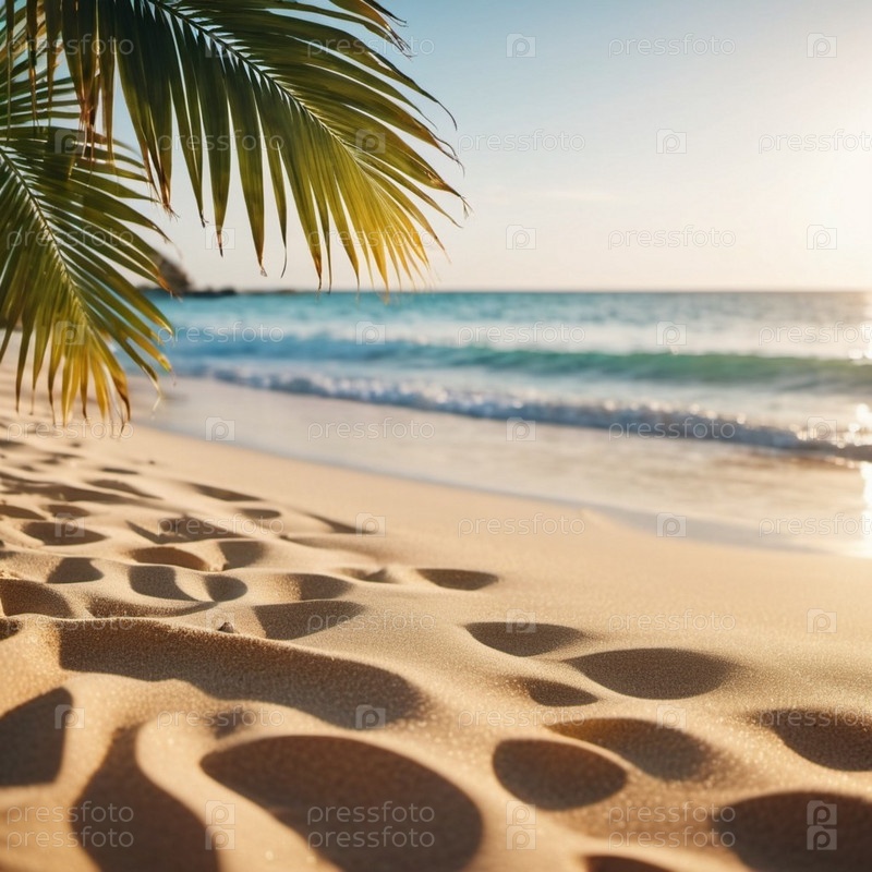Спокойная пляжная сцена с мягкими волнами, песчаным берегом и пальмами, отбрасывающими тени. Яркие цвета и мягкие мазки создают умиротворяющую атмосферу. Сгенерированный ИИ. Путешествия на солнечном пляже