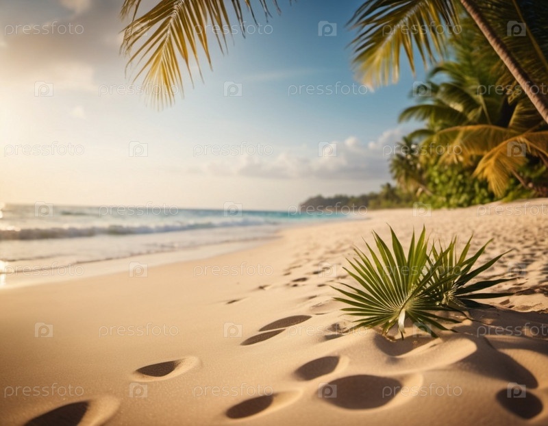 Спокойная пляжная сцена с мягкими волнами, песчаным берегом и пальмами, отбрасывающими тени. Яркие цвета и мягкие мазки создают умиротворяющую атмосферу. Сгенерированный ИИ. Путешествия на солнечном пляже