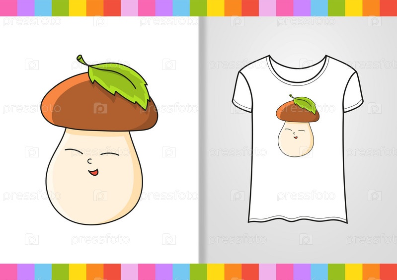 Дизайн футболки. Милый персонаж на футболке. Нарисовано от руки. Красочная векторная иллюстрация. Мультяшный стиль. Изолировано на белом фоне