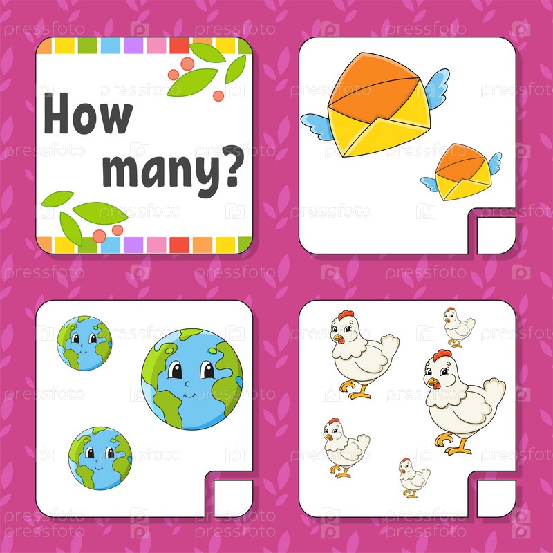 Игра-подсчет для детей. Счастливые персонажи. Изучение математики. Сколько объектов на картинке. Рабочий лист по образованию. С местом для ответов. Изолированная векторная иллюстрация в милом мультяшном стиле