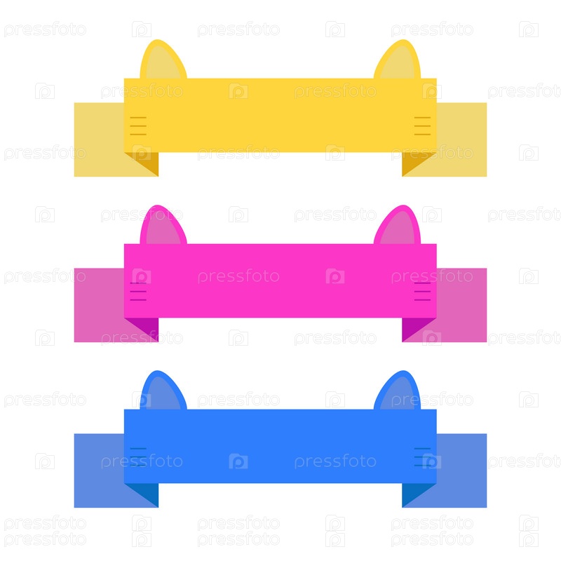 Набор изолированных плоских цветных лент баннеров с ушами. На белом фоне. Подходит для дизайна