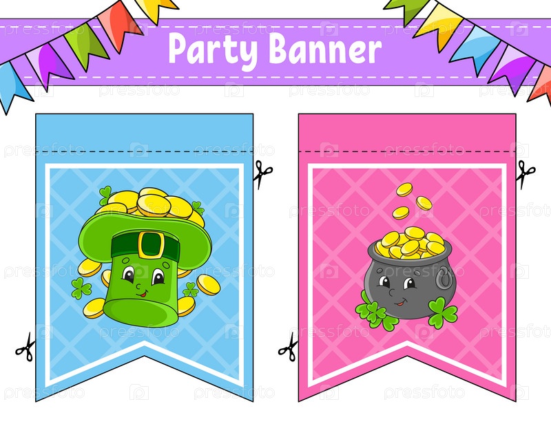 Баннер вечеринки. С милыми персонажами мультфильмов. Для праздников, дня рождения, праздничного. Векторная иллюстрация