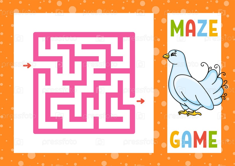 Квадратный лабиринт. Игра для детей. Головоломка для детей. Счастливый персонаж. Головоломка лабиринта. Цветная векторная иллюстрация. Найдите правильный путь. Изолированная векторная иллюстрация. Мультяшный стиль